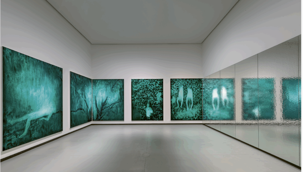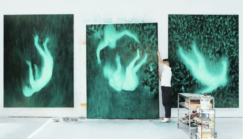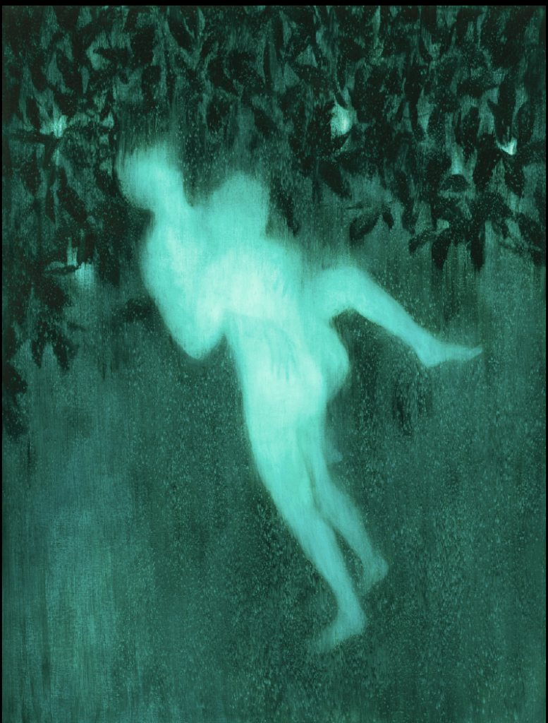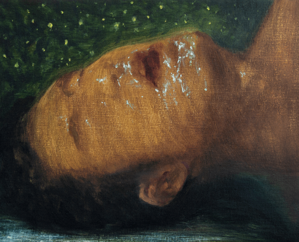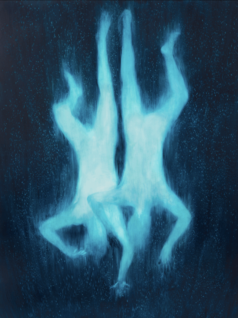 He choreographs an absence of self to open the way to others: viewers can identify with these nameless, anonymous bodies, which show no clear distinction between male and female, even if the male gender is sometimes suggested in some of the Fall or Slumbers’ paintings.