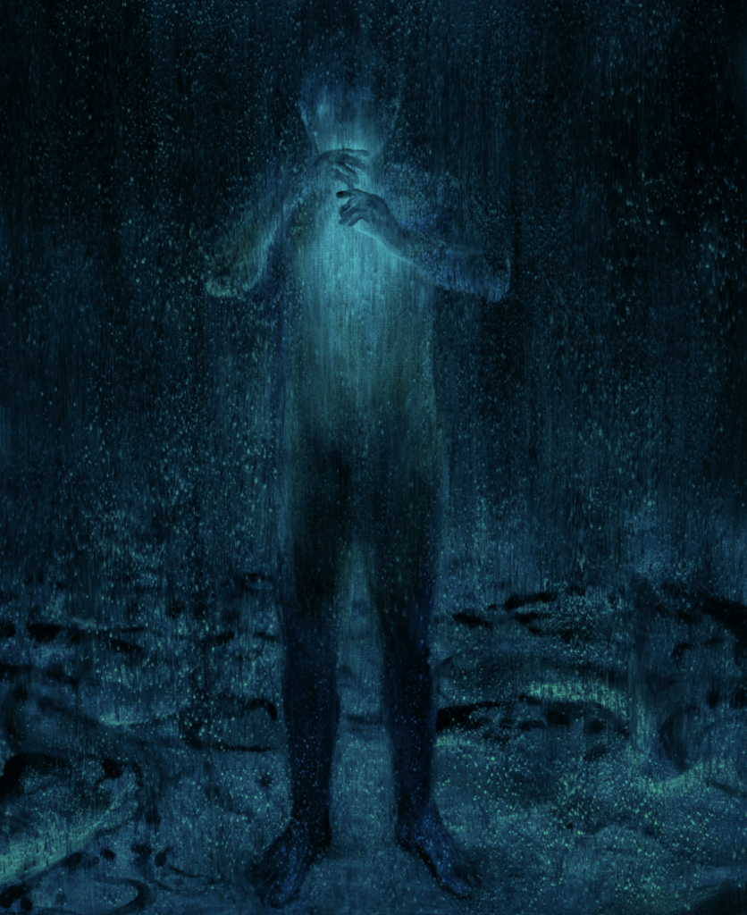 Xie Lei creates this light. He shapes it so it illuminates the painting, like a kind of incandescence, a thermal capture or a spectral halo.